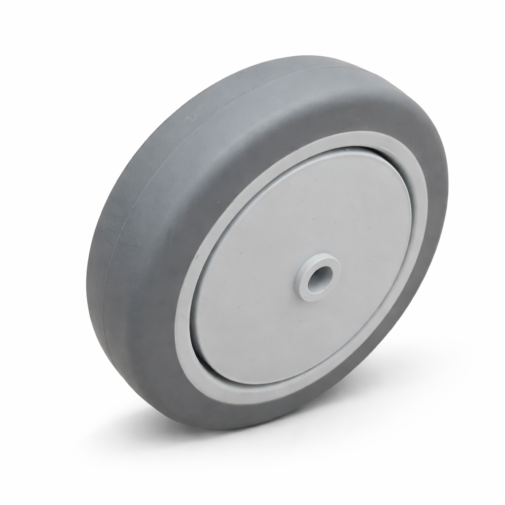 Rueda TPR de 5 pulgadas para carritos industriales, ideal para un desplazamiento suave, silencioso y sin marcas en el piso. Recomendada para almacenes, centros logísticos, hospitales y comercios. Alta durabilidad, bajo mantenimiento y excelente desempeño en uso continuo.