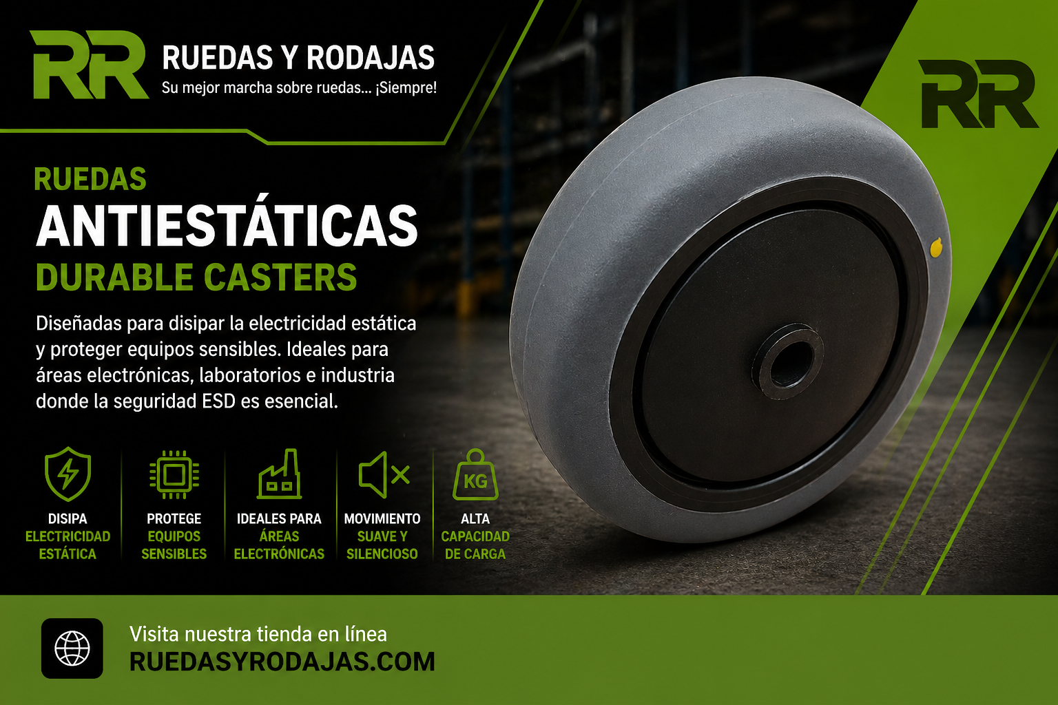 En Ruedas y Rodajas ofrecemos ruedas antiestáticas Durable Casters para aplicaciones industriales y áreas electrónicas en todo México. Contamos con soluciones ESD para laboratorios, manufactura electrónica, hospitales y equipos especializados. Realizamos entregas en Querétaro, Guadalajara, Monterrey, Aguascalientes y todo México.